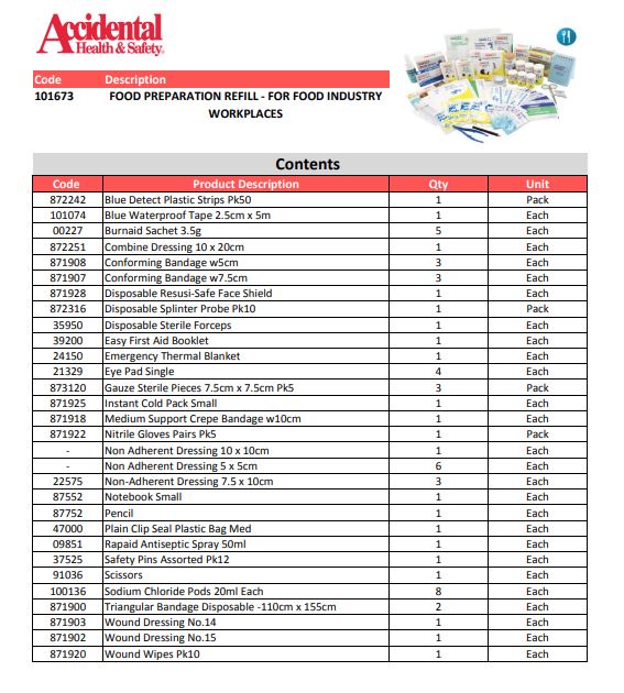 This pack is designed to assist with a self assessed workplace rating of “Low Risk” under the Safe Work Australia First Aid Code of PracticeMeets recommended first aid list in the Code of Practice 2012