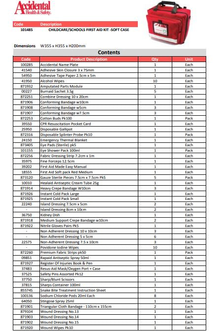 First Aid Kit National Childcare/Schools Workplace Code of Practice - Red Soft Case