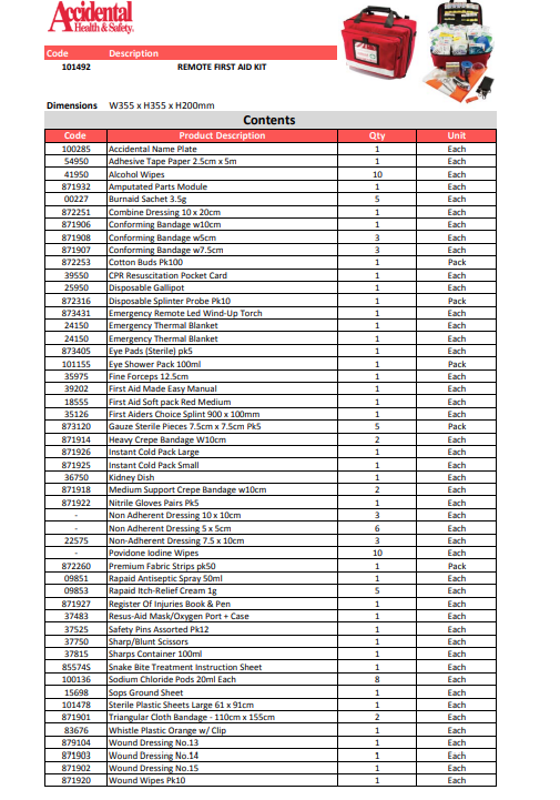 Meets and exceeds the Code of Practice for First Aid In The Workplace contents for first aid kits and remote module nationally